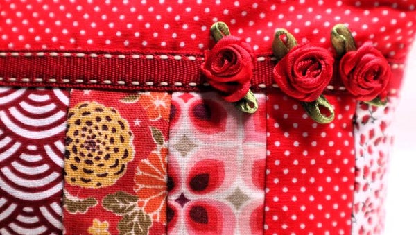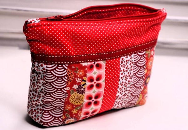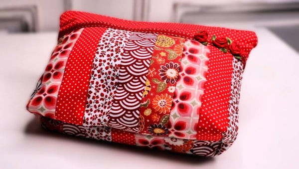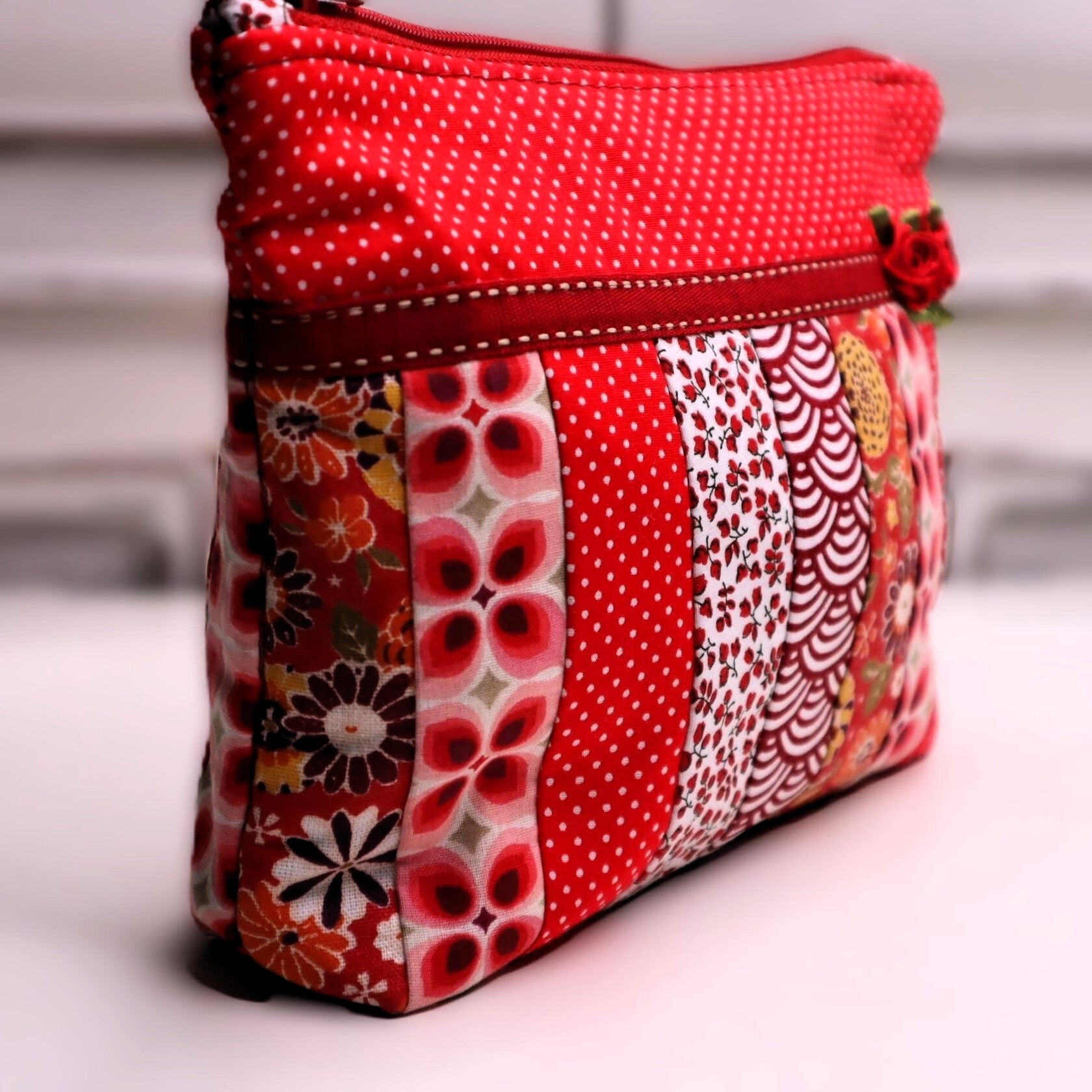 petite trousse patchwork 21 cm x 15 cm - avec de petites roses brodée