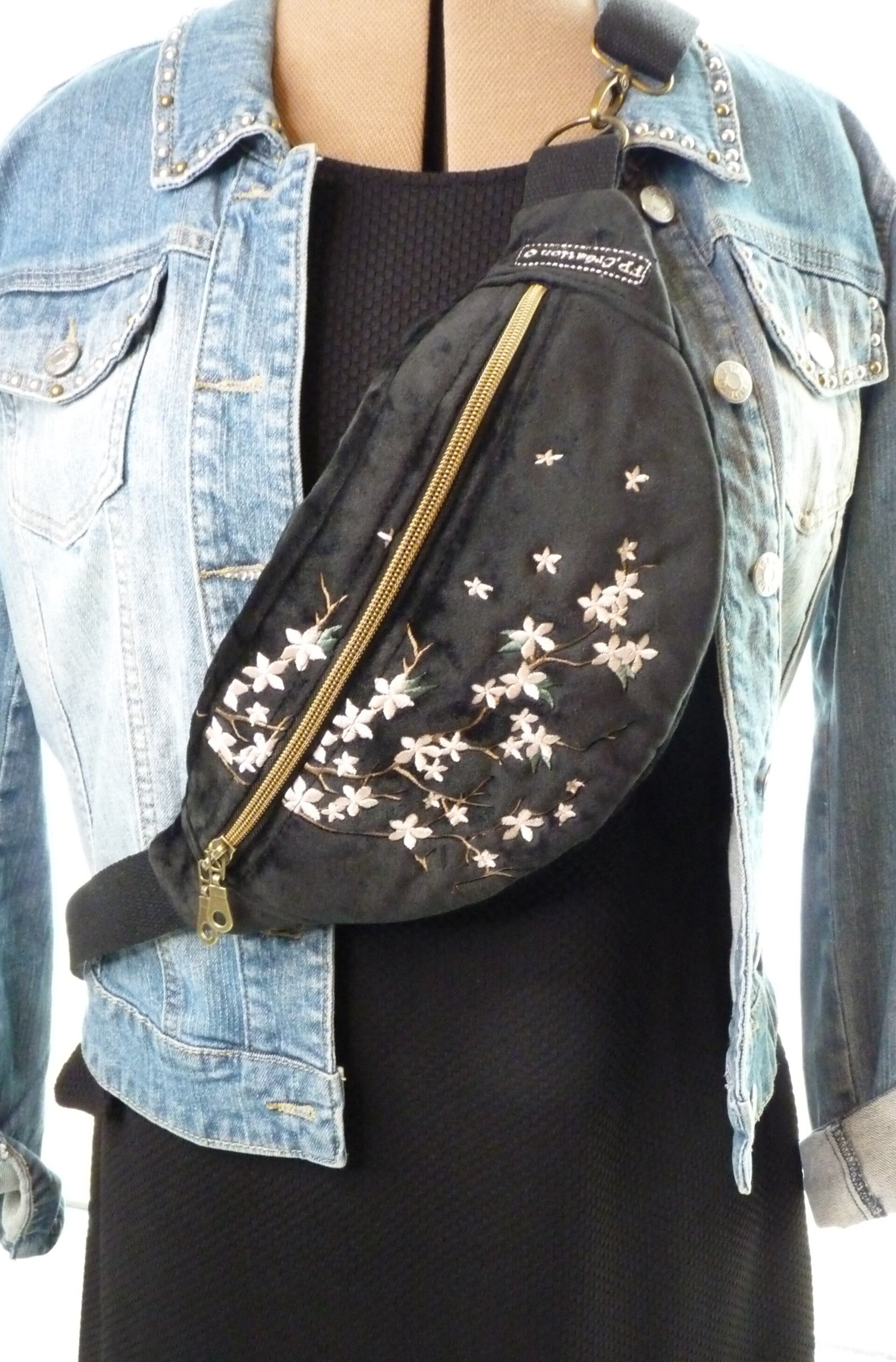 Sac banane -tissu velour - L 40 cm x h 15 cm